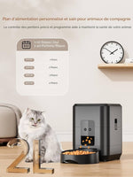 Vous pouvez programmer jusqu’à 4 repas par jour, en choisissant l’heure et la quantité de croquettes à distribuer.